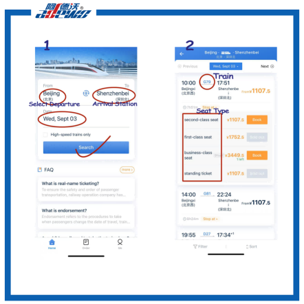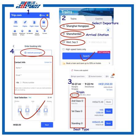 Mangkene pandhuan sing gampang kanggo pesenan sepur kacepetan dhuwur ing rong app - 12306 lan trip.com
