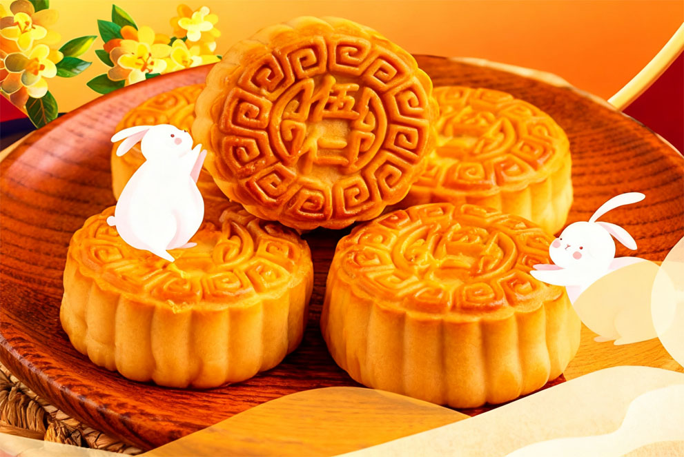 Mooncakes minangka panganan tradisional, kanthi bentuk pamulangan sing makili reuni, lan pangisi kayata tempel winih teratai, buncis abang buncis, utawa campuran lima buncis.